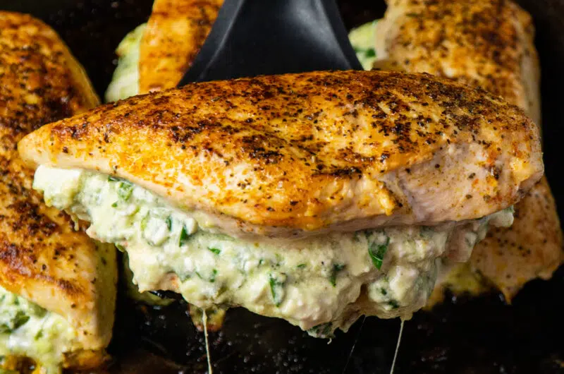 Chicken breast, spinach, cream cheese (milk ingredients, salt, locust bean gum, guar gum, xanthan gum, bacterial culture), cheese product made with parmesan (modified milk ingredients, bacterial culture, salt, microbial enzyme, lipase, cellulose, water, sorbic acid, may contain annatto), garlic, dehydrated onion, salt, lemon juice concentrate, citric acid, potassium sorbate.